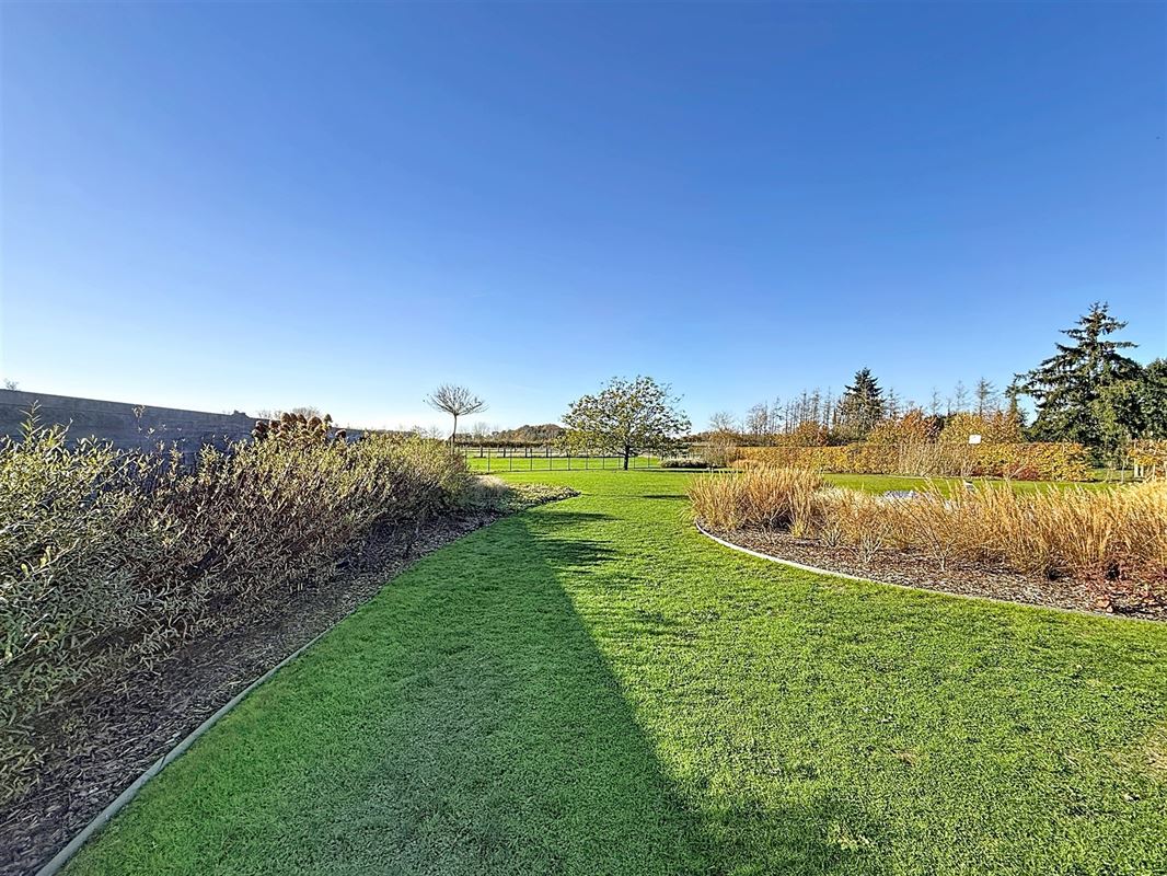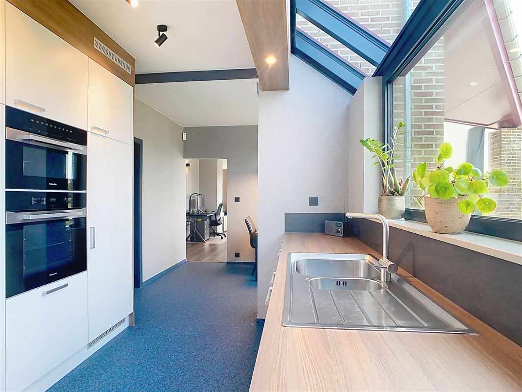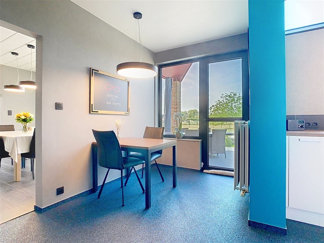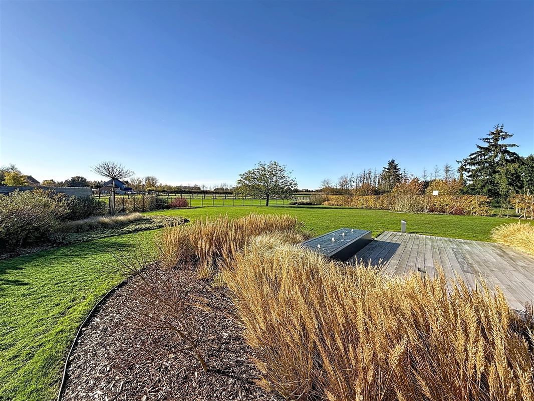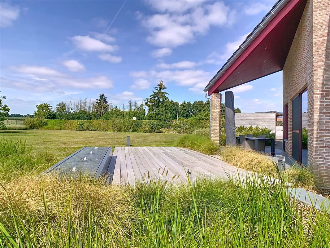 Vanuit de eetplaats en het ontbijthoekje is er directe toegang tot de twee terrassen dewelke is afgewerkt met een stijlvolle waterpartij.