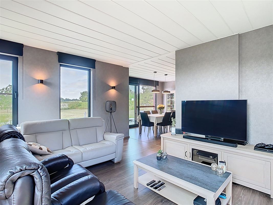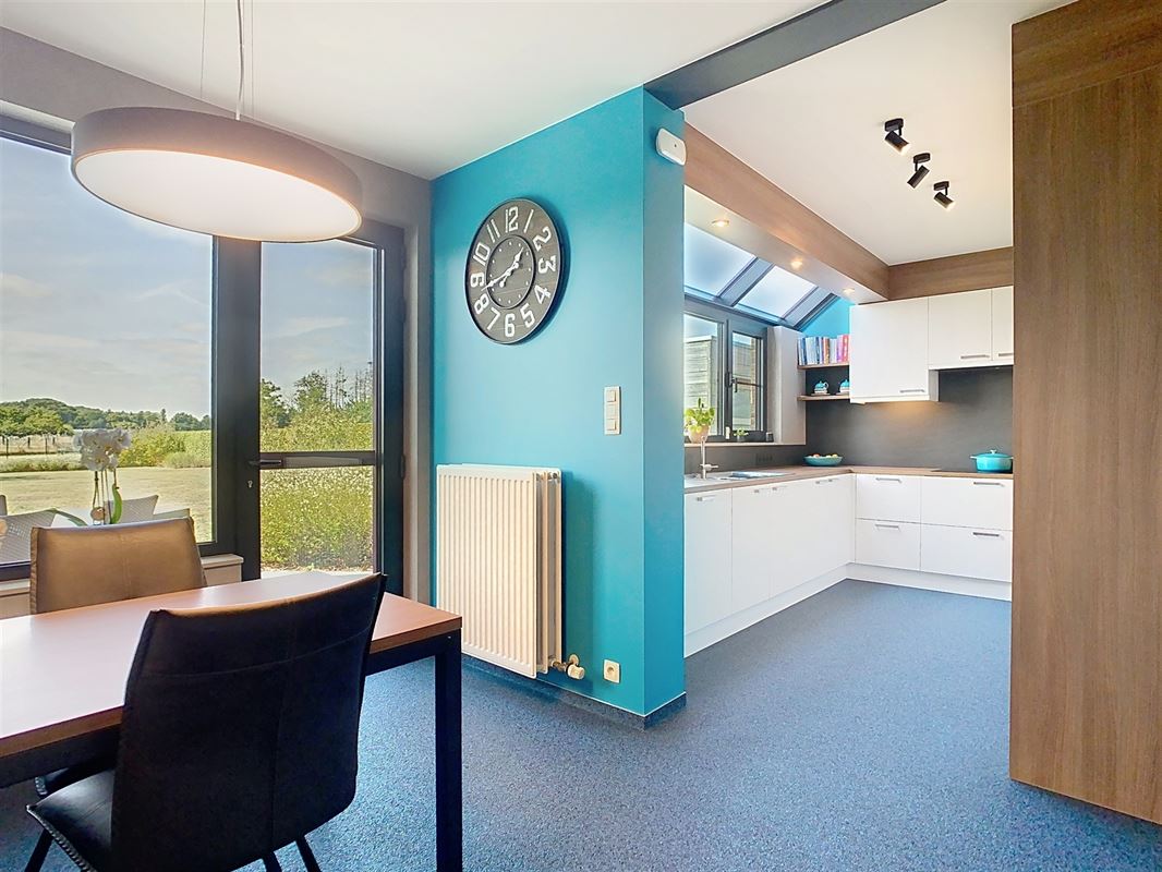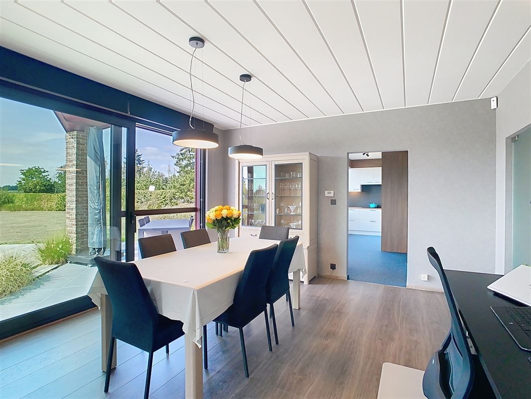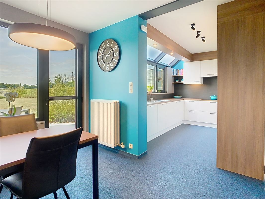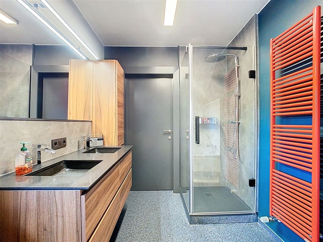 Vanuit de eetplaats en het ontbijthoekje is er directe toegang tot de twee terrassen dewelke is afgewerkt met een stijlvolle waterpartij.