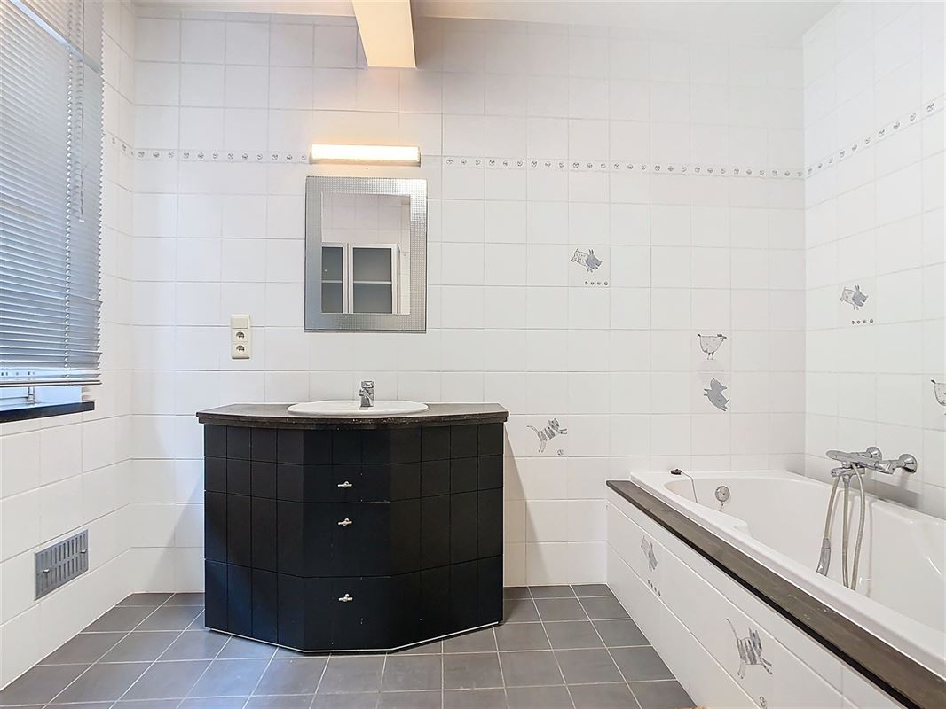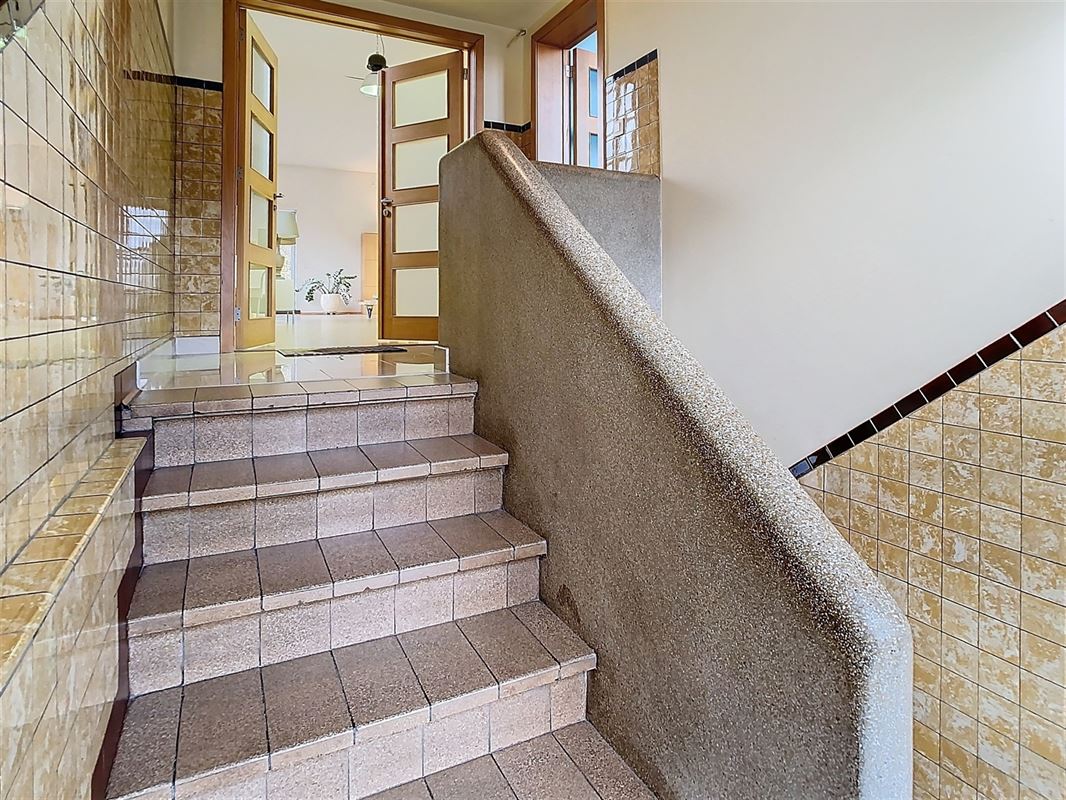 Via de linkse doorgang betreed je de woning. Het gelijkvloers omvat een ruime inkomhal met een ingebouwde kast, een nachthal, twee aparte toiletten, een badkamer voorzien van een ligbad, meubel, douche en wastafel, een grote slaapkamer (optie opsplitsen in 2 kamers), een berging en een wasplaats met een lavabo. De eerste verdieping is voorzien van een hal, een ruime woonkamer met een eetplaats van ca. 83m2 en een ingerichte keuken met een eiland. Via een zolderluik in de keuken heb je toegang tot de zolderruimte, geschikt als extra opbergruimte.