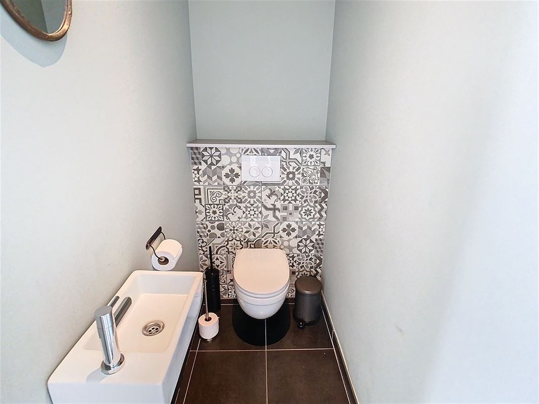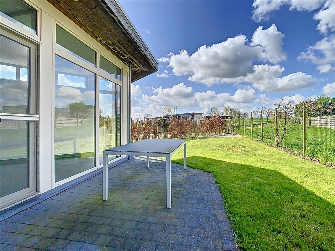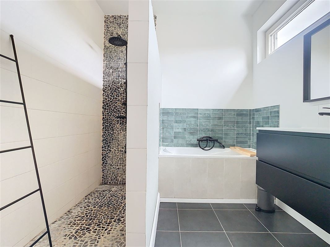 Het gelijkvloers omvat een ruime lichtrijke woonkamer met een houtkachel van ca 45 m2, een hal, gastentoilet met lavabo, een moderne badkamer voorzien van een ligbad, inloopdouche, wastafel en badkamermeubel en een wasplaats. De volledig ingerichte keuken, uitgerust met huishoudtoestellen, sluit naadloos aan op de grote eetplaats die dankzij grote raampartijen een prachtig uitzicht biedt op de tuin en rechtstreeks toegang geeft tot het terras. De eerste verdieping is voorzien van een nachthal, een apart toilet met een lavabo en drie comfortabele slaapkamers.