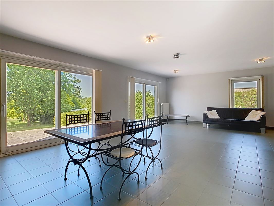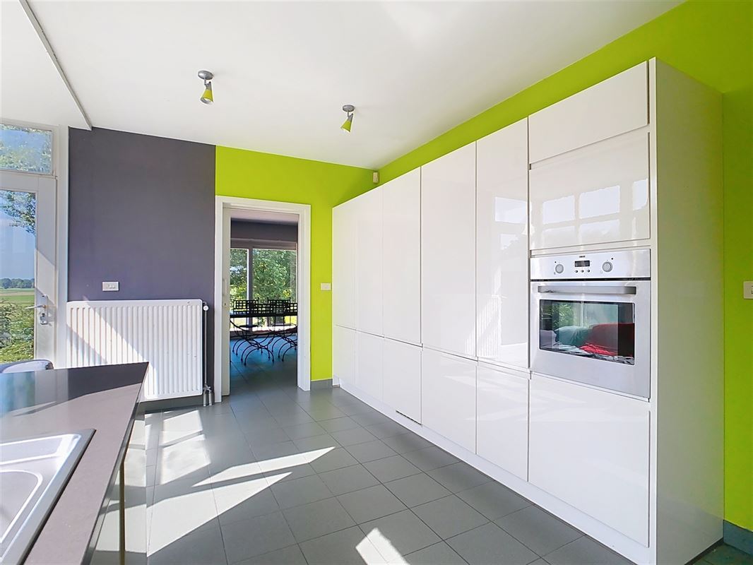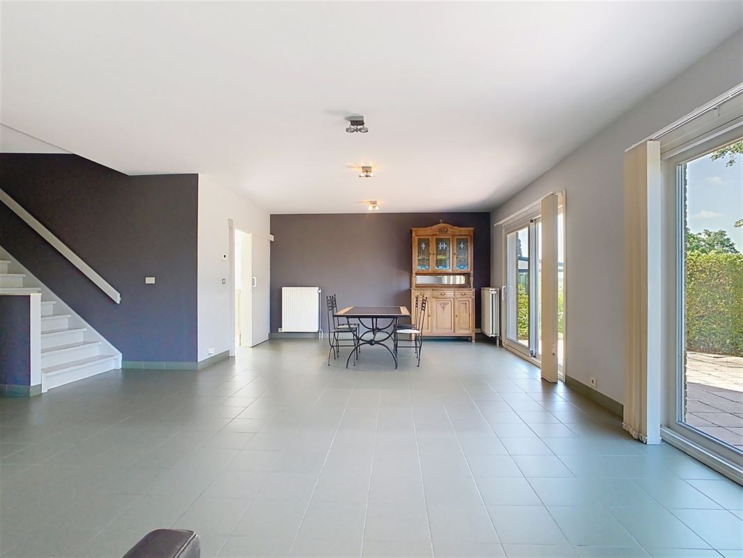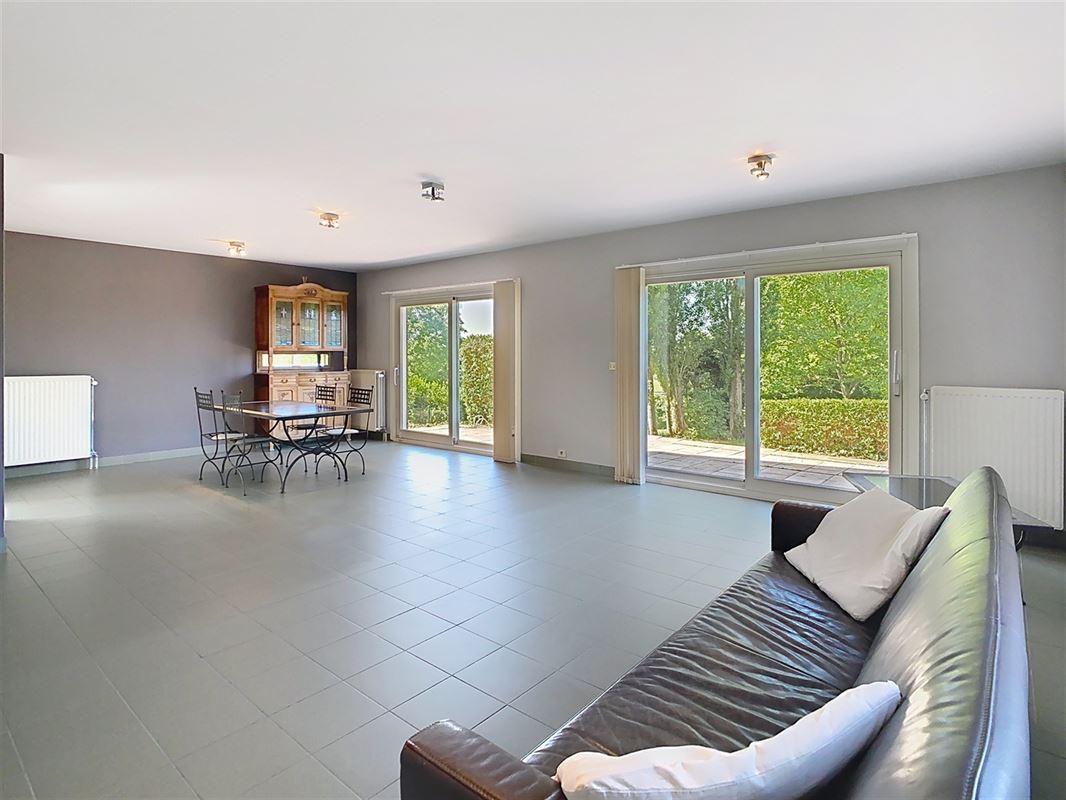 Het gelijkvloers omvat een ruime inkomhal, gastentoilet met lavabo, berging onder de trap, wasplaats met lavabo, aparte CV-ruimte, een volledig ingerichte keuken (vernieuwd in 2009) met ingebouwde toestellen en een lichtrijke woonkamer met eetplaats van ca 45 m2 die een mooi uitzicht én directe toegang biedt tot het terras en de aangename tuin.