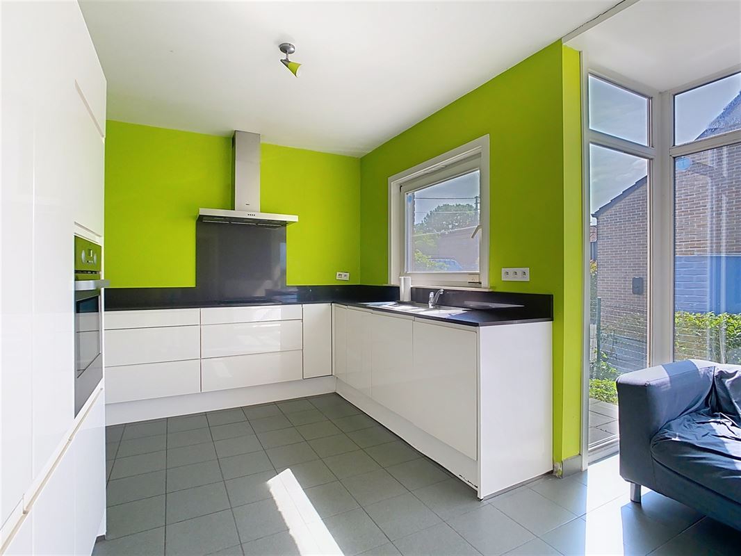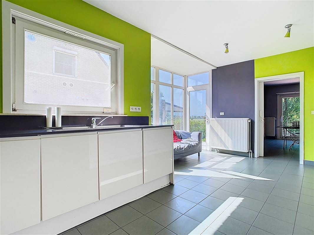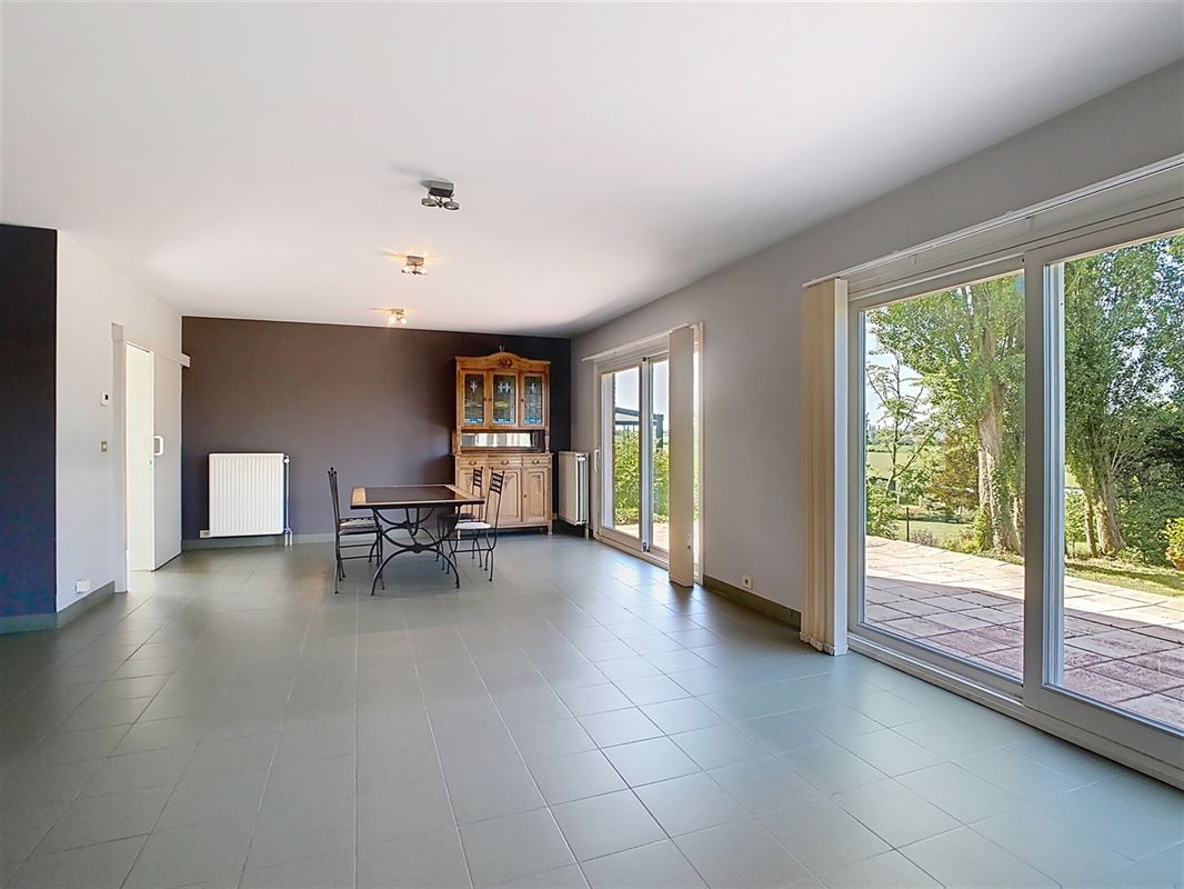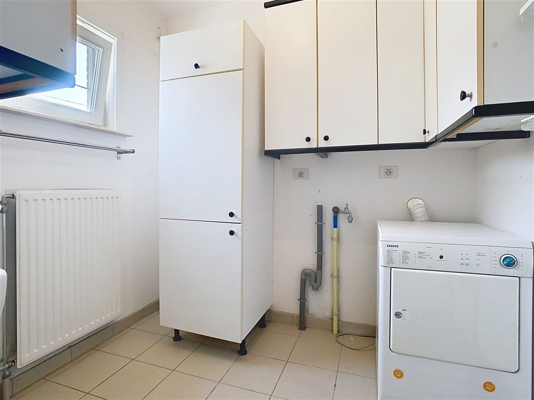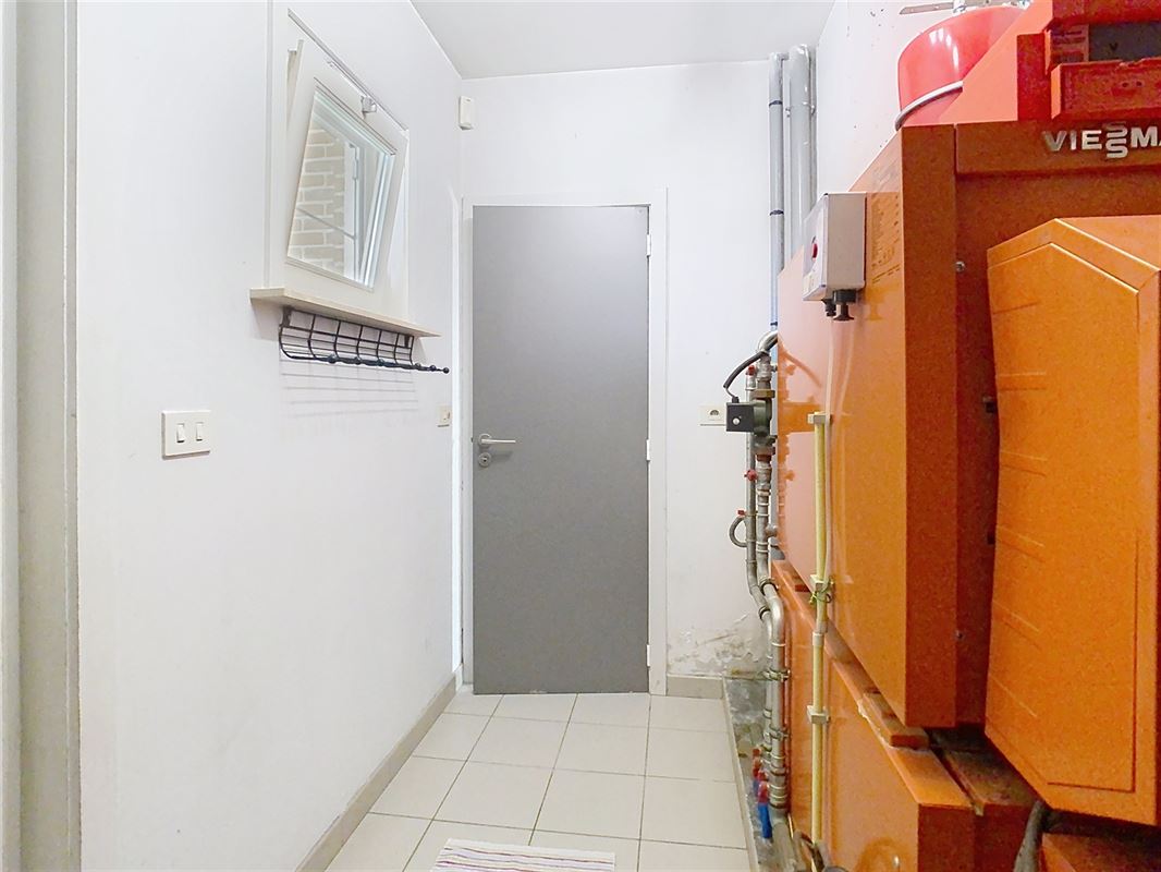 Het gelijkvloers omvat een ruime inkomhal, gastentoilet met lavabo, berging onder de trap, wasplaats met lavabo, aparte CV-ruimte, een volledig ingerichte keuken (vernieuwd in 2009) met ingebouwde toestellen en een lichtrijke woonkamer met eetplaats van ca 45 m2 die een mooi uitzicht én directe toegang biedt tot het terras en de aangename tuin.