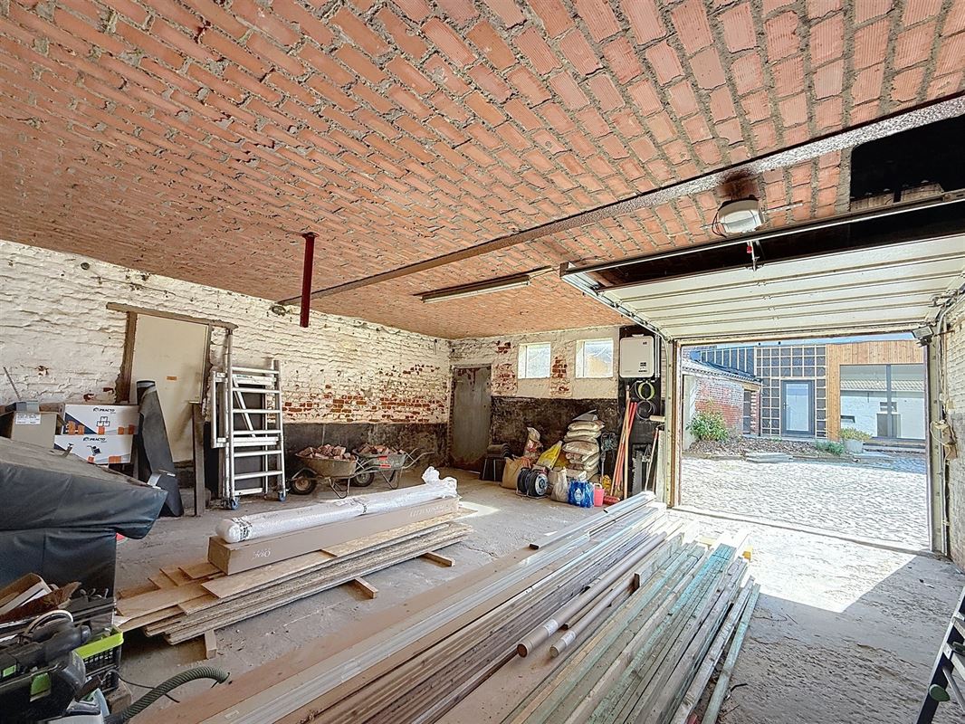 Buiten beschikt de woning over een volledig omheinde binnenkoer, een gezellig tuintje, een overdekte opslagruimte (ca. 42 m²) en een bijgebouw van ca. 118 m², onderverdeeld in een ruime garage, een stockageruimte en twee stallen. Dit bijgebouw heeft bovendien een verdieping en biedt tal van mogelijkheden: ideaal voor opslag, het uitoefenen van een vrij beroep, een zelfstandige activiteit (info via dienst Omgeving) of een creatieve invulling zoals atelier, hobby- of praktijkruimte.