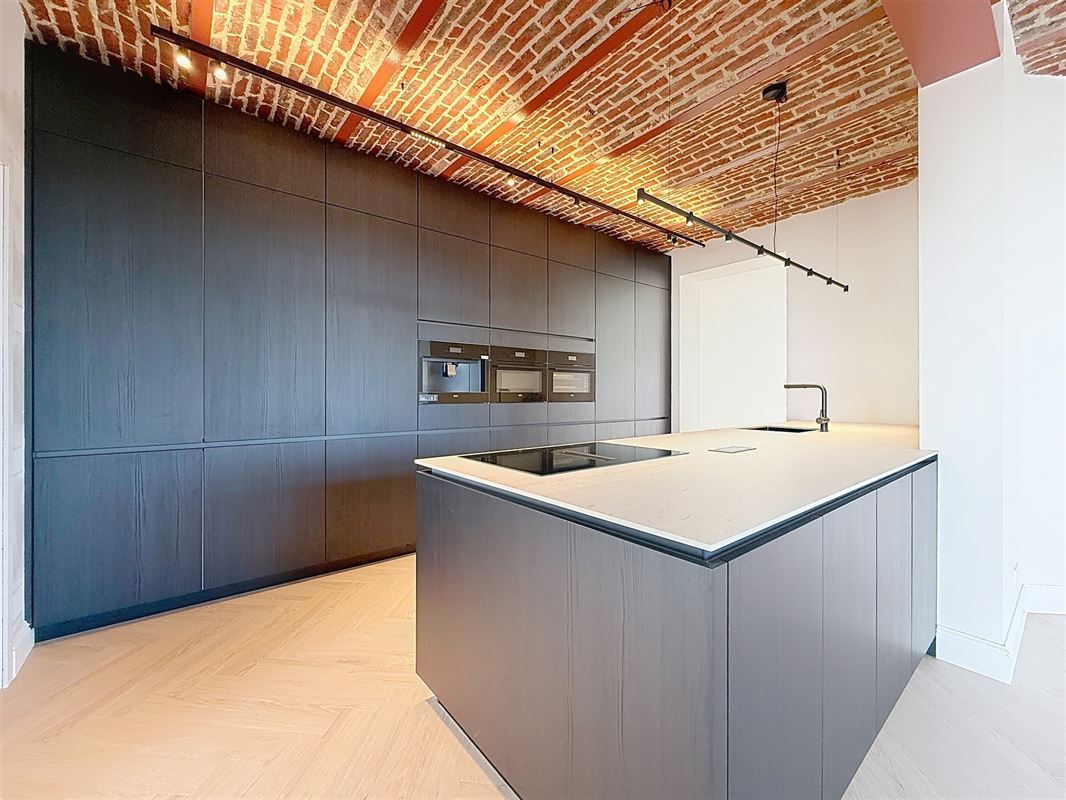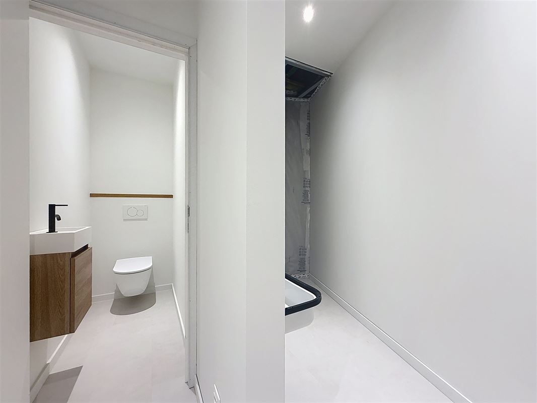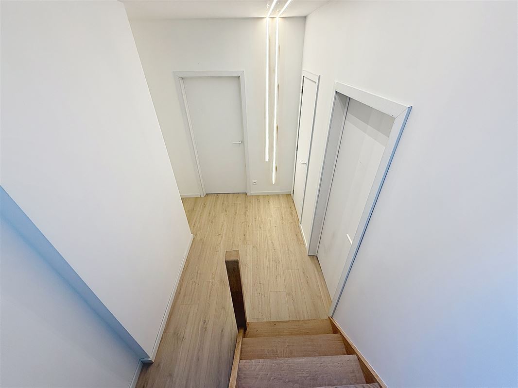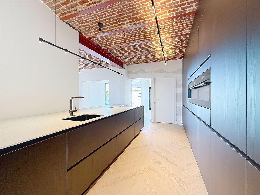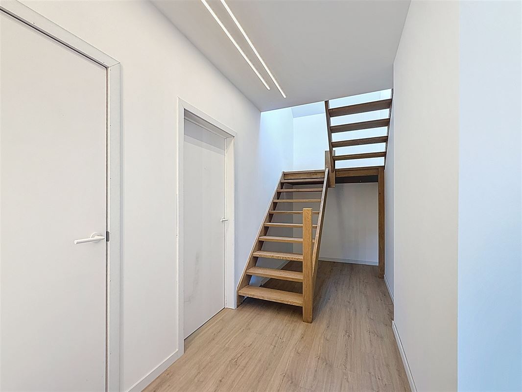 Het gelijkvloers omvat een inkomhal met mooie houten trap, een lichtrijke zithoek met aansluitende eetplaats en een volledig ingerichte keuken met kookeiland. De keuken is voorzien van hoogwaardige AEG-toestellen: twee koelkasten, ingebouwd koffiemachine, combi-stoomoven, combi-microgolfoven, vaatwasser en inductiekookplaat met geïntegreerde afzuiging. Alle ruimtes op dit niveau staan met elkaar in verbinding, wat zorgt voor een ruimtelijk en huiselijk gevoel. Verder zijn er een ruime leefruimte met zicht op de binnenkoer, een wasplaats, een gastentoilet met lavabo en een technische ruimte.