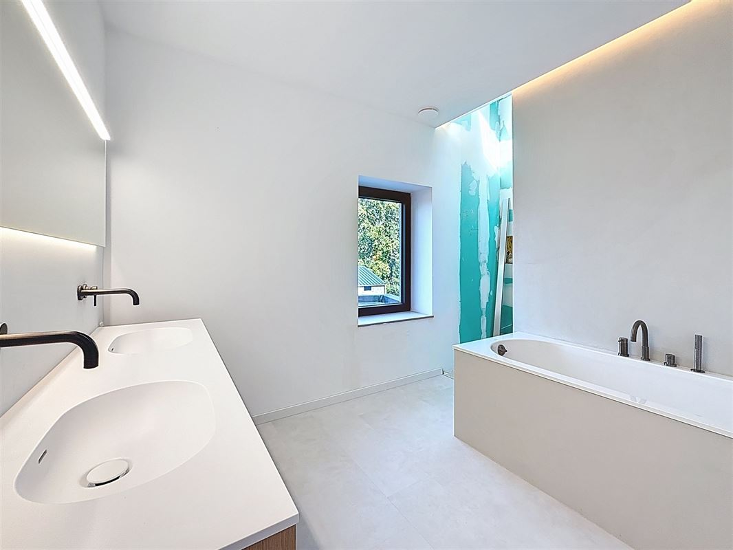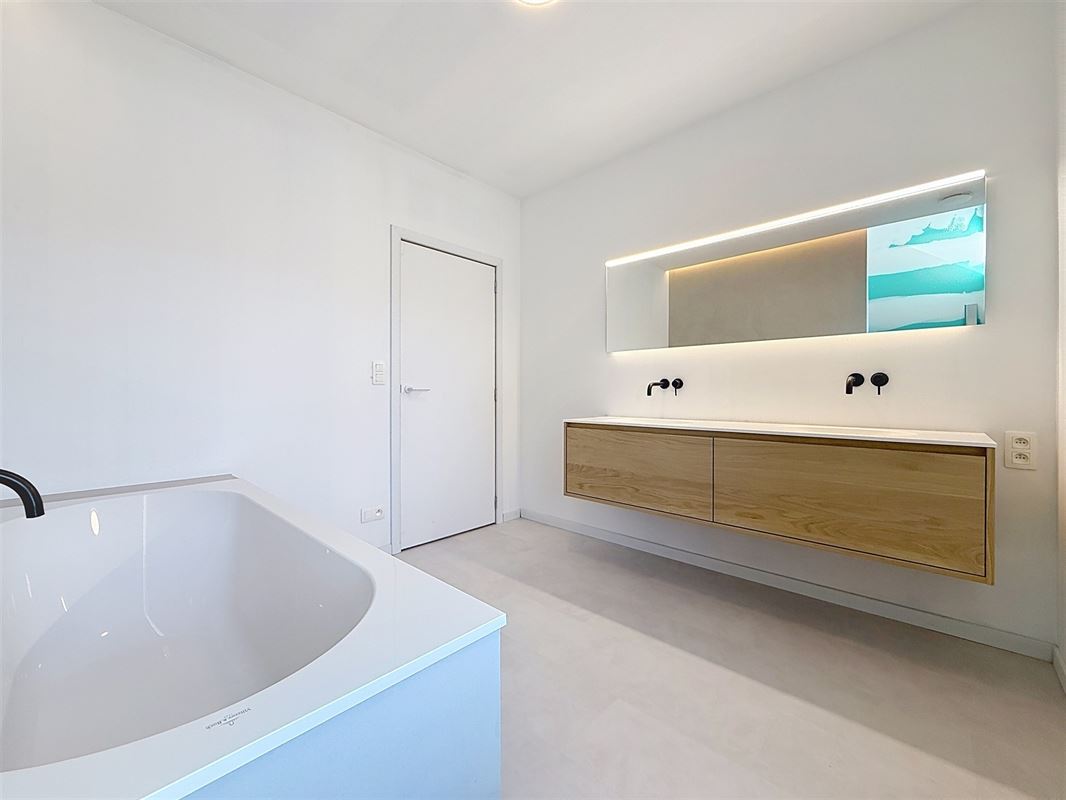 Op de eerste verdieping bevinden zich een nachthal met ingebouwde LED-strips, drie comfortabele slaapkamers met airconditioning en een stijlvolle badkamer, ingericht met een ligbad, dubbele inloopdouche, dubbel wastafelmeubel en toilet. Daarnaast is er nog een apart toilet met lavabo en een extra technische ruimte.