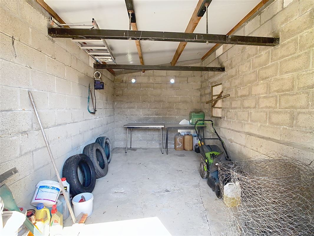 De woning beschikt over een kelderverdieping met twee kelderruimtes en een kruipkelder. Daarnaast is er een ruime garage met sectionaalpoort en aansluiting voor een wasmachine. Beide zijden van de woning hebben een oprit met plaats voor meerdere voertuigen.