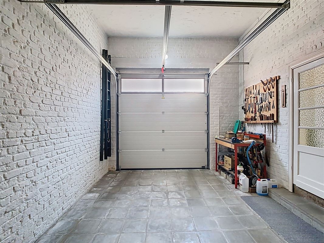 Er is eveneens een ruime garage voorzien van een elektrische sectionaalpoort, met daarachter een praktische berg- of stockageruimte voor extra opslag.
