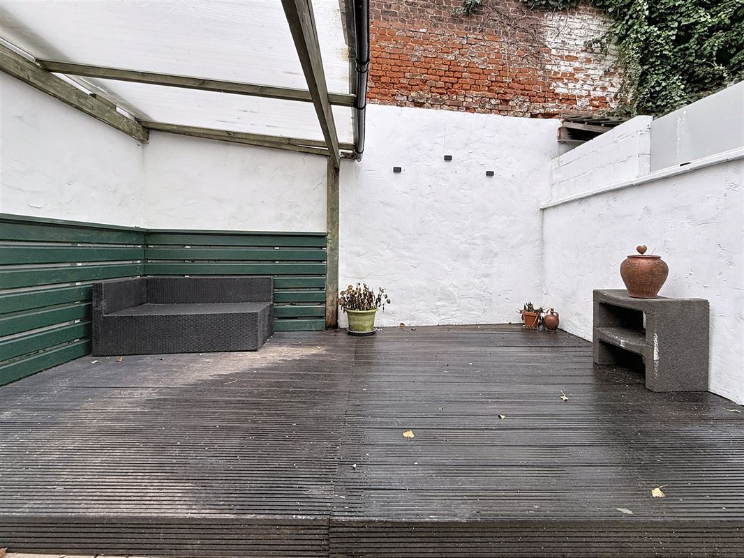 Het ingesloten terras van ca. 19m2 is bereikbaar via het schuifraam in de keuken.
